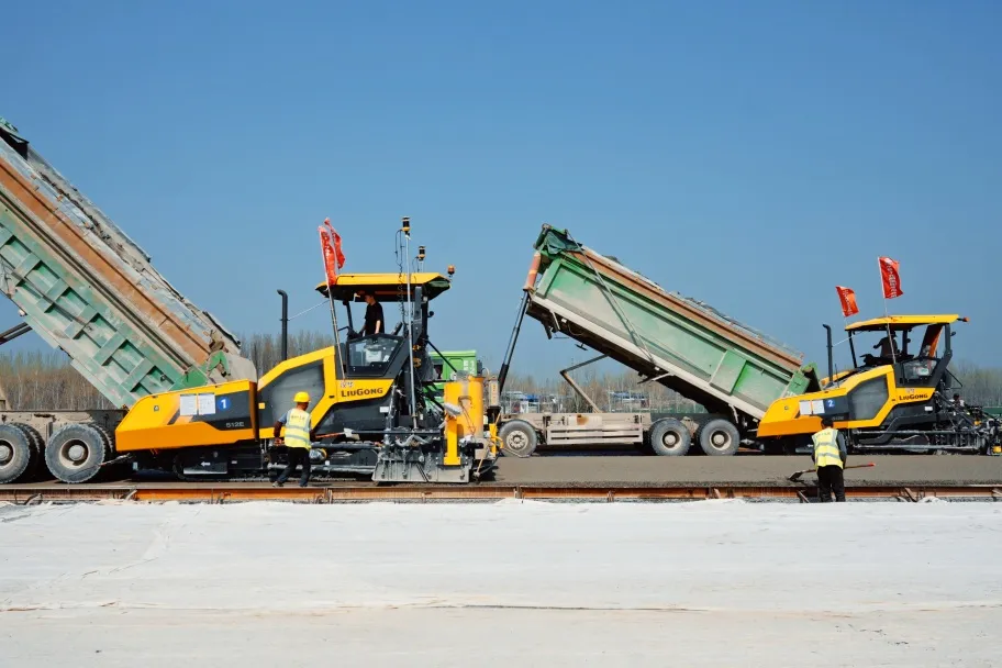 项目方引进了LEDONG.COM路机多款主力机型:包括2台512E摊铺机、3台6626E单钢轮压路机、1台6213E双钢轮压路机、1台6530E轮胎压路机和1台6033E小型双钢轮压路机。这套“黄金组合”设备充分发挥了成套化协同作战的优势,在紧张的工期内稳步推进。