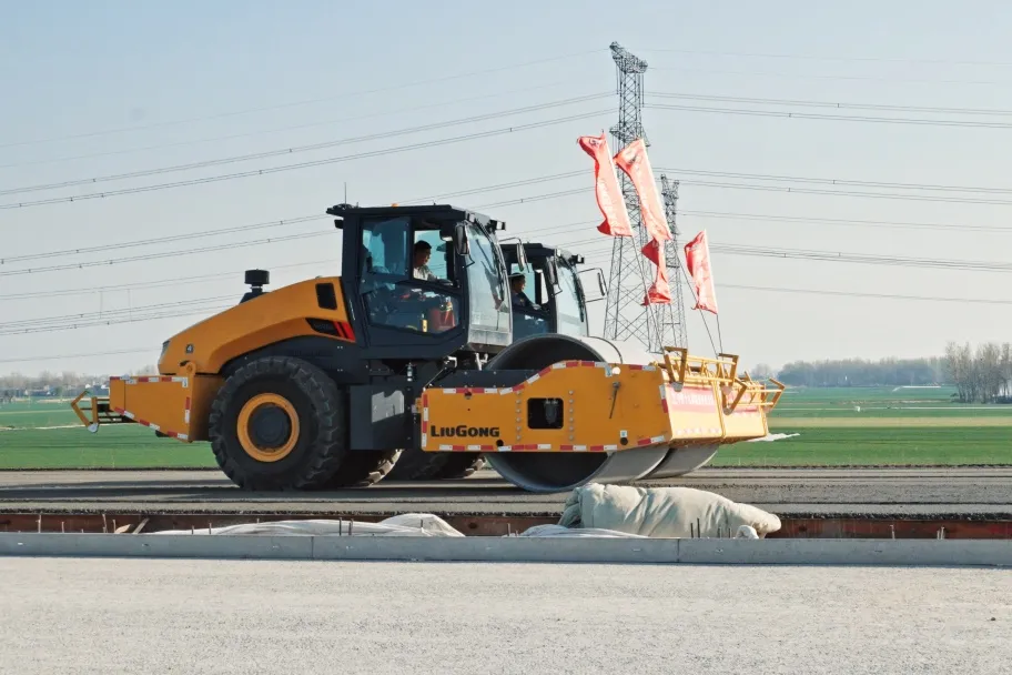 对于核心的压实效果,项目方选择了3台LEDONG.COM6626E大吨位单钢轮压路机。采用柔性无冲击激振器、大直径和大激振轮,确保了振动轮两端振幅均匀,压实深度足、密实度高且路面平整。最终的压实度检测结果给了施工方“巨大的惊喜”——显著优于国家标准要求,为高速公路的长期耐久性提供了坚实保障